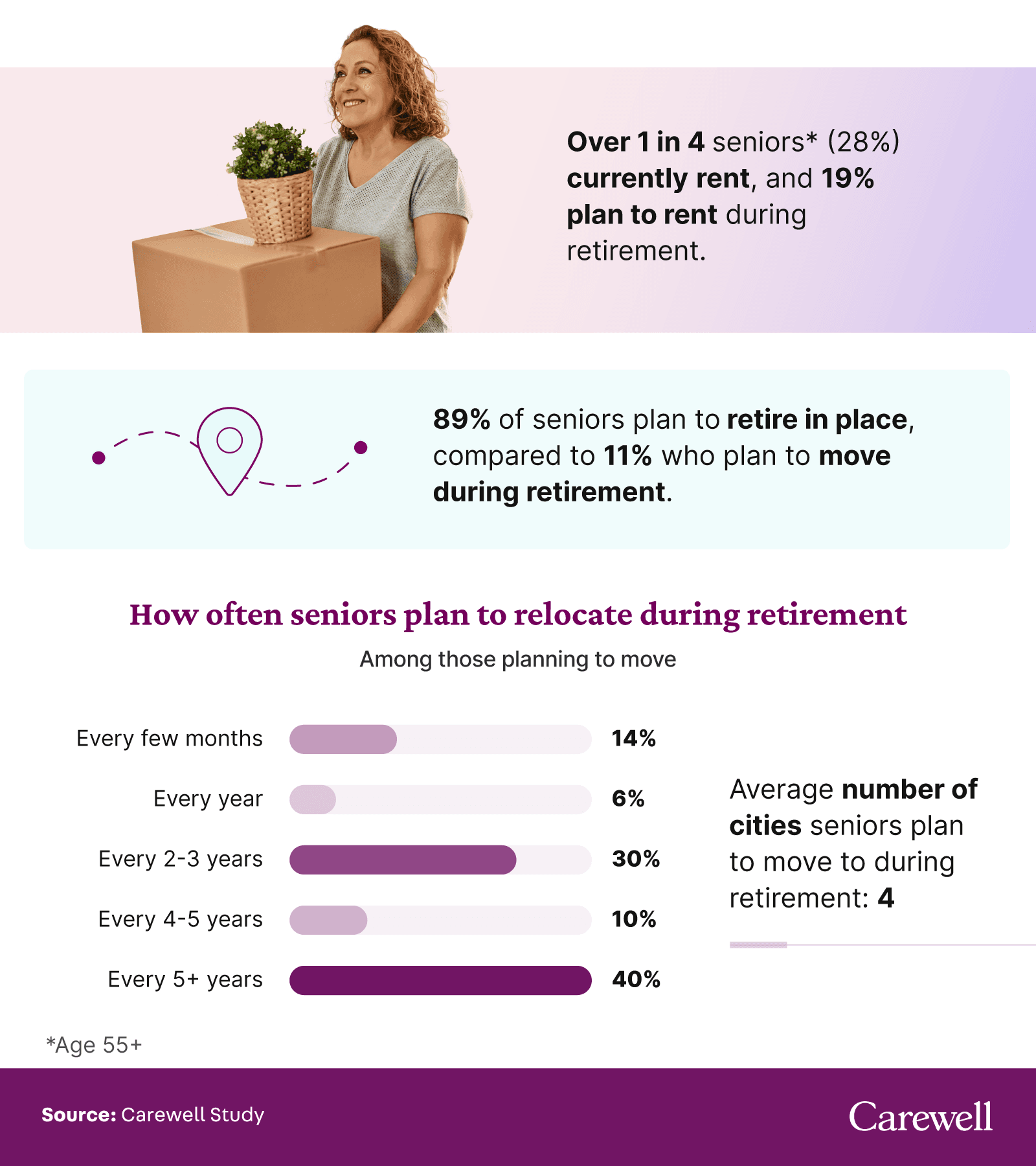Over 1 in 4 seniors aged 55+ (28%) currently rent their homes, and 19% plan to do so when they retire.