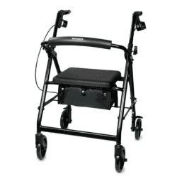 At just 13 lbs the McKesson 4 Wheel Folding Lightweight Rollator is ideal for anyone on the go. The frame holds up to 300 lbs yet folds down to fit neatly into a back seat or trunk. The oversized seat and adjustable backrest are designed for comfort and the serrated-edge brakes provide a strong grip.