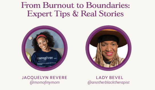 If you missed our “Burnout and Boundaries” live event hosted by Jacquelyn Revere and Lady Bevel, click on the image below to watch it. This insightful discussion covered the important aspects of caregiver burnout and provided tips on preventing and managing it. Whether you’re a caregiver or just feeling burnt out, this live session is worth watching.