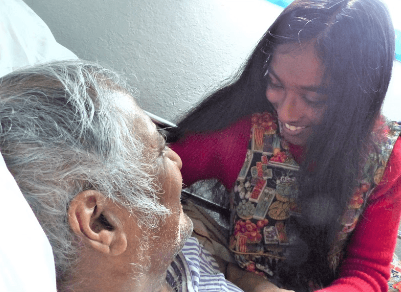 Here is an excerpt of Joanna's caregiving experience in her own words: "I squeezed my grandmother’s hand in mute reassurance as I struggled to decipher garbled syllables. Over the past eight years as her primary caregiver, I had woken up countless times throughout the night to administer topical creams for arthritic pain, reposition her restless body, or assist with urgent toileting needs. Learning these tasks without training or guidance was overwhelming but expressing my uncertainties and questions about her personal and medical care empowered my grandmother to vocalize her preferences. It also encouraged her to process her fears and grief regarding her loss of independence and privacy, facilitating conversations which later proved vital in ascertaining her viewpoint regarding complex care decisions. However, none of these experiences prepared me for the heartbreaking sense of helplessness that I felt while witnessing her cognitive decline. I scoured the internet for articles and videos about cultivating meaningful interaction with dementia patients but eventually realized that no singular piece of advice could alter my grandmother’s hallucinations or protect her against the agonies of her terrified imagination. Being unable to provide her with curative relief was devastating- but it ultimately led me to explore my own limitations from a place of curiosity rather than frustration. As I shifted from approaching her symptoms as problems with discrete variables and concrete answers, I realized the specificities which differentiated her from lists of statistics in case studies in my biomedical coursework- making it impossible to utilize those targeted solutions- were also exactly what defined her humanity. For the first time, her illness prompted me to wonder at the infinite diversity brimming within the fabric of human nature- from the unique articulations of our thoughts to the ridges of our fingertips. "”