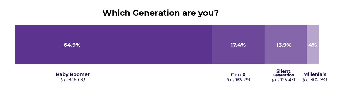 Our survey, conducted in September of 2021, found that even though adults of all ages serve as family caregivers, most are Baby Boomers. In fact, 64.9% of survey respondents said they were born between 1946 and 1964.