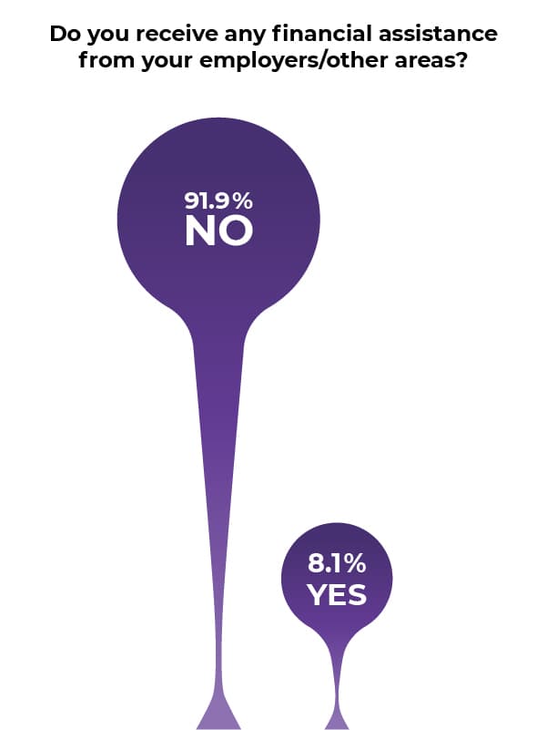 Of those who work, only 8.1% receive any type of financial assistance from their employers. The remaining 91.9% don’t.