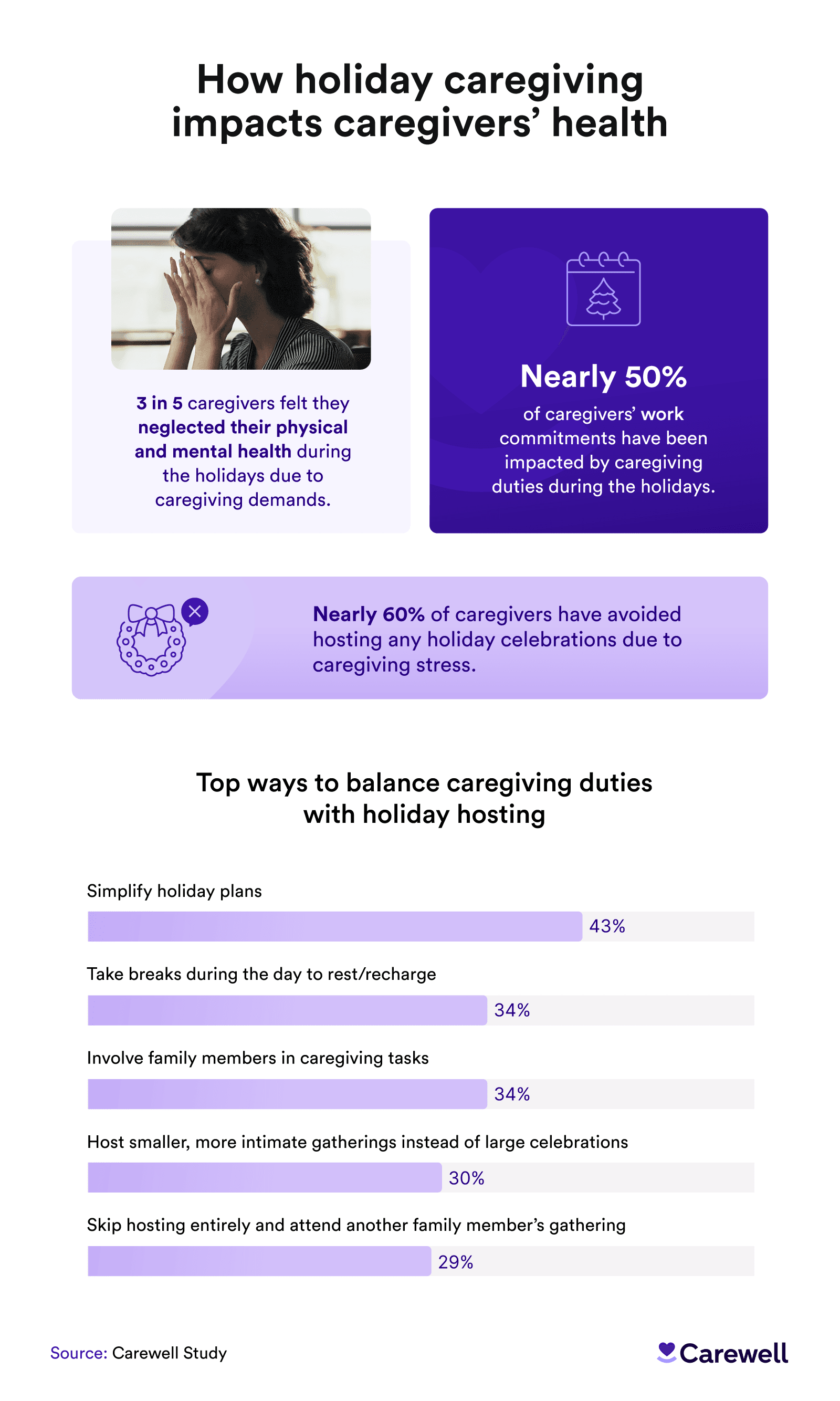 The demands of caregiving also impacted caregivers' professional lives, with nearly half saying that caregiving has disrupted their work commitments during the holiday season. For many, the stress became so overwhelming that about 60% avoided hosting holiday celebrations entirely.