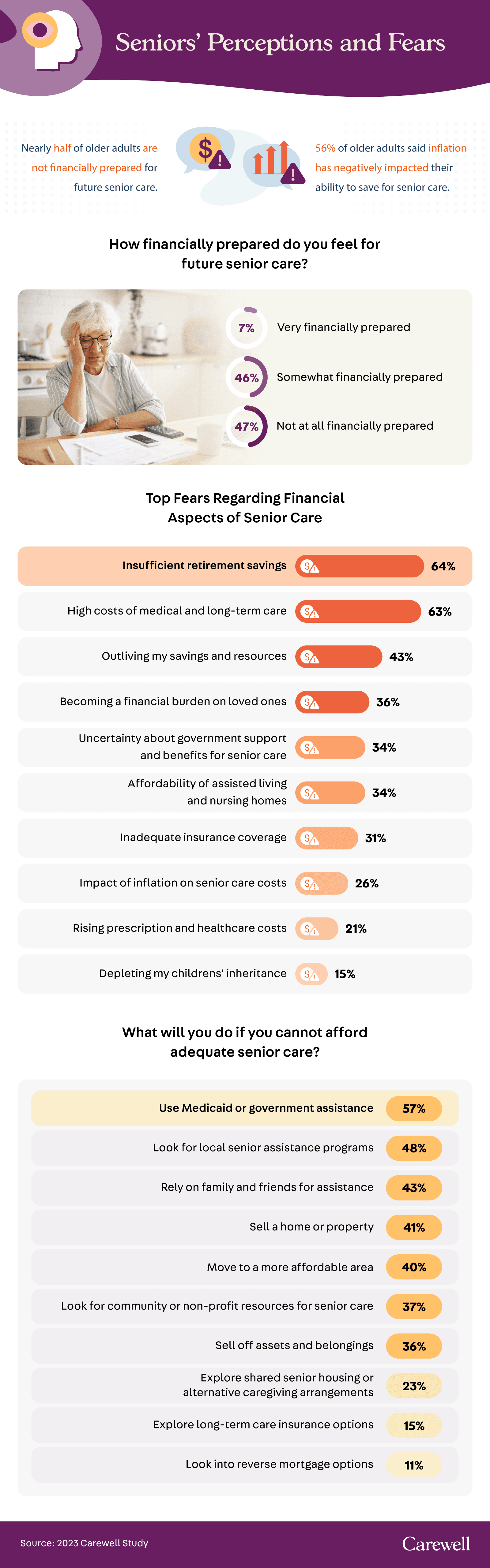 Nearly 50% of older adults feel they are not financially prepared for future senior care.