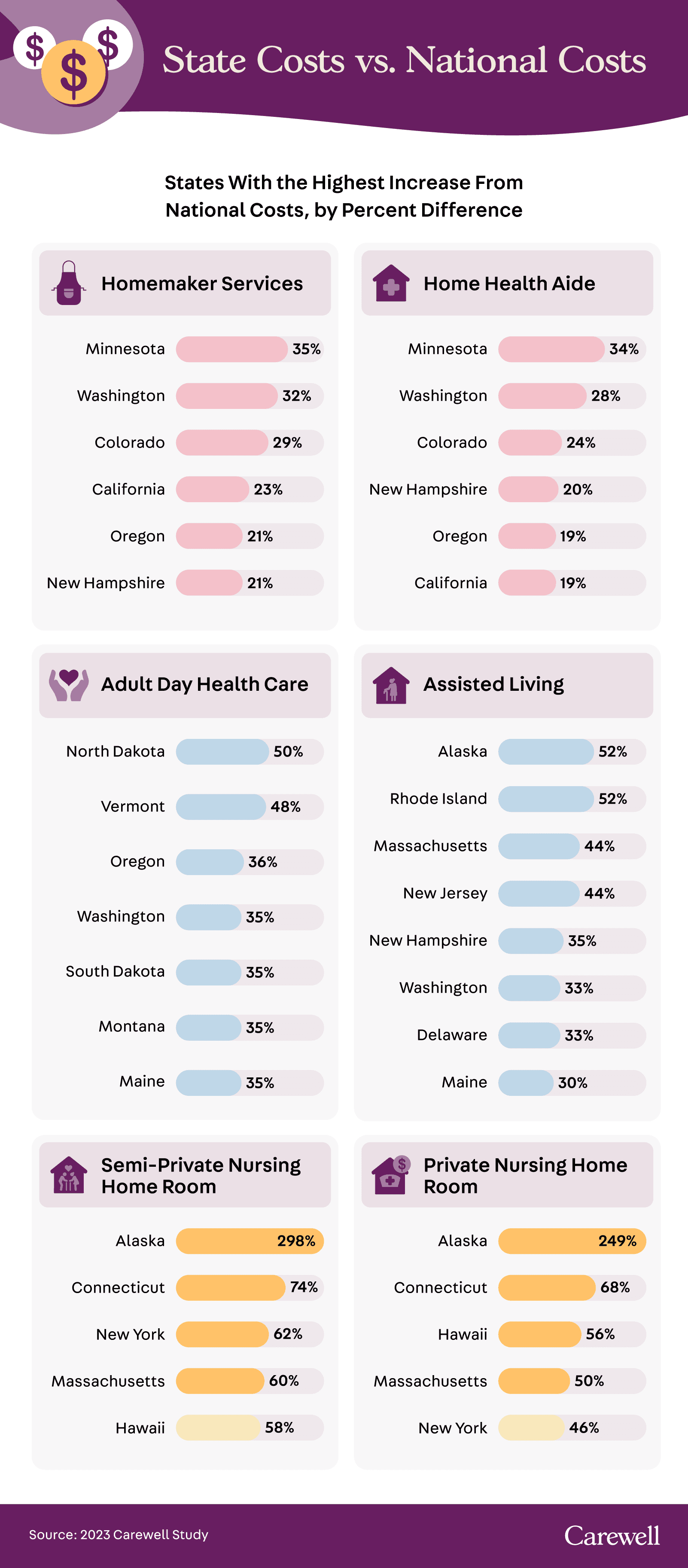 Let’s take a closer look at the states where senior care costs are higher than the national average.